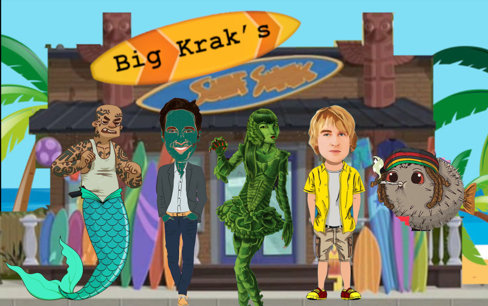 Here’s an animated pilot that my writing partner, Jessica and I have been working on about a surf shop run by two brothers. Oh, and everyone is an enchanted sea creature.